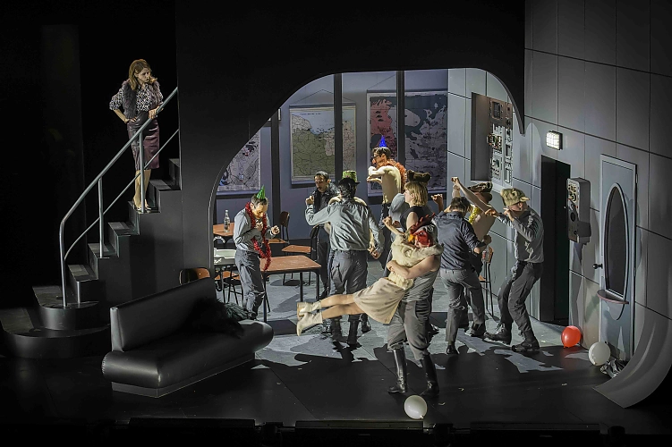 Auch bei Tschechow spielt sich das alles vor dem Hintergrund des Militärstützpunktes ab, den der verstorbene Vater als Brigadegeneral geführt hat. Mateja Koležnik rückt das Militär nur auf die Hinterbühne, von der dann immer wieder rauflustige und krawallbereite Soldaten in den Vordergrund drängen. Und je länger je mehr entfaltet sich eine Vorkriegsstimmung, die immer krasser wird, wenn Bomber über das von Klaus Grünberg bunkerartig eingerichtete Haus donnern und Artilleriefeuer ertönt. Das Ende ist ein Knall. Mitten in Olgas Schlussmonolog „Oh, meine lieben Schwestern, unser Leben ist noch nicht vorbei. Und ich glaube, schon bald werden wir erfahren, wofür wir leben, wofür wir leiden... Man weiß es einfach nicht, man weiß es nicht. Man weiß es einfach nicht, man weiß es nicht“ fährt ein ohrenbetäubender Kanonenschlag hinein und ein Blackout, der das Premierenpublikum erstarren ließ, bevor es sich langsam steigernd zum begeisterten Applaus durchrang.