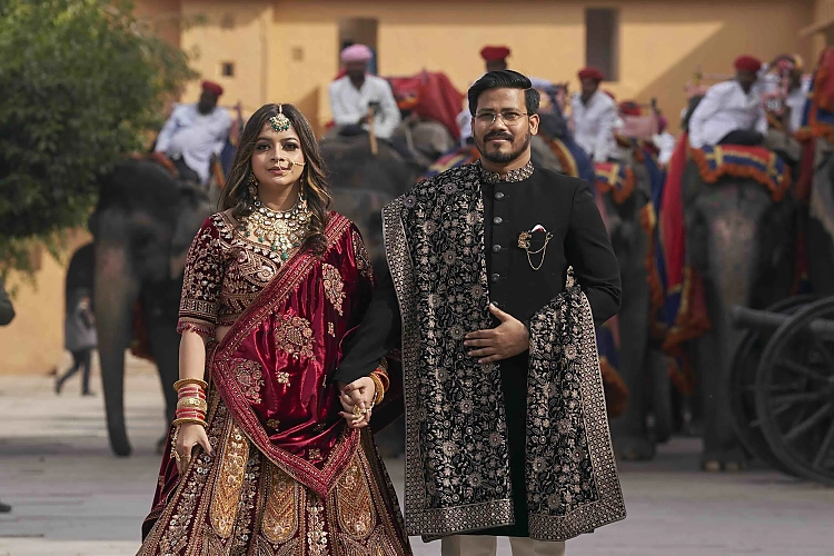 Ein junges Paar in Amber Fort, Jaipur, beim herstellen eines „Pre Wedding Videos“. Diese werden in Indien gerne an geschichtsträchtigen Orten gemacht und am Hochzeitsabend gezeigt. Foto: Alexander Paul Englert