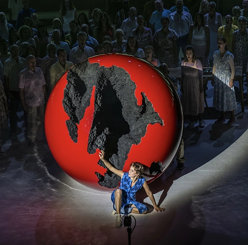 Getanzt wurde zum „Messias“ schon öfter (legendär die Choreografie von John Neumeier in Hamburg). Regisseur Damiano Michieletto hatte aus dem biblischen Oratorium weltliches Musiktheater, das in der heutigen Zeit spielte, gemacht: unter Beibehaltung der Originaltexte legte er die Geschichte einer jungen Frau (Anouk Elias, Schauspielerin), die an einem unheilbaren Hirntumor erkrankt ist und selbstbestimmt sterben möchte, was wiederum die Gegner der Sterbehilfe auf den Plan ruft, darüber. Mithilfe des darstellerisch arbeitenden Chores entstanden großartige und großformatige Bilder, wie auch sehr intime Szenen mit ihrer Ärztin (Julia Grüter, Sopran) oder der Familie (Mutter: Rachel Wilson, Alt, Vater: Tijl Faveyts, Bass und dem Ehemann: Rupert Charlesworth, Tenor). Damit hat die derzeit (oder dauerhaft? Dazu: link zu) wegen Modernisierung heimatlose und an mehreren Spielorten agierende Komische Oper trotz widrigster Umstände einen neuen Meilenstein in Sachen Kultur und deren Fortentwicklung geliefert. Einen Kassenmagneten dazu, denn der „Messias“ war zu über 99 Prozent ausgelastet.