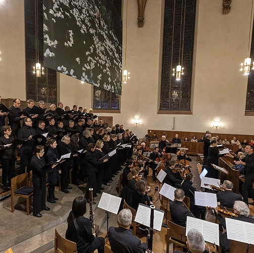 Als Solisten wirken mit: Nike Tiecke (Sopran), Gunaélle Mörth (Alt), Konstantin Glomb (Tenor) und Josua Bernbeck (Bass). Die Kantorei St. Katharinen und das Bach Collegium Frankfurt werden geleitet von Markus Stein.