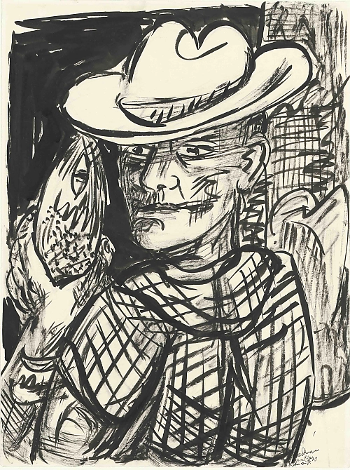 DIE KURATOREN REGINA FREYBERGER, LEITERIN DER GRAPHISCHEN SAMMLUNG AB 1800 AM STÄDEL MUSEUM, HEDDA FINKE UND STEPHAN VON WIESE, AUTOREN DES DREIBÄNDIGEN WERKVERZEICHNISSES DER ZEICHNUNGEN BECKMANNS, ERGÄNZEN: „Die Zeichnungen sind ein Schlüssel zu Beckmanns Werk. Zeichnend entwickelte er seine unverwechselbare Bildsprache, hielt Gesehenes und Erlebtes fest, formte seine persönliche Weltanschauung und verwandelte flüchtige Eindrücke in vielschichtige, bedeutungsgeladene Kompositionen. Im Lauf seines Lebens entstanden mehr als 1.900 schwarz-weiße, nicht in Skizzenbüchern gebundene Zeichnungen in Feder, Kreide oder Bleistift – vom raschen Entwurf bis hin zum autonomen Bild. Die Ausstellung zeigt daraus eine ebenso konzentrierte wie repräsentative Auswahl, die – ergänzt um einzelne farbige Arbeiten, Druckgrafiken und Gemälde – den Zeichner Max Beckmann in großer Intensität erfahrbar machen.“